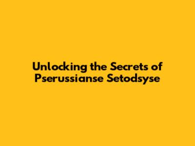 Unlocking The Secrets Of Pserussianse Setodsyse