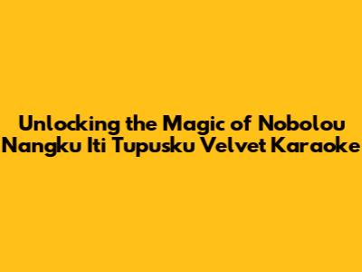 Unlocking Velvet Karaoke: A Guide To Nobolou Nangku Iti Tupusku
