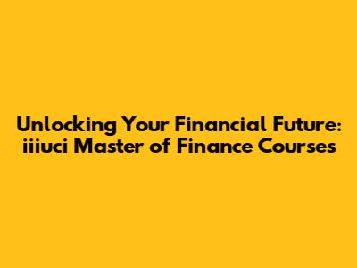 Unlocking Your Financial Future: Iiiuci Master Of Finance Courses