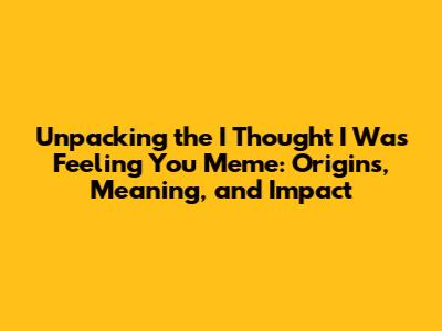 Unpacking The 'I Thought I Was Feeling You' Meme: Origins, Meaning, And Impact