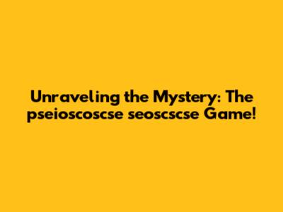 Unraveling The Mystery: The Pseioscoscse Seoscscse Game!