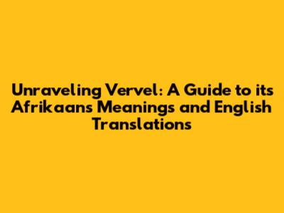 Unraveling 'Vervel': A Guide To Its Afrikaans Meanings And English Translations