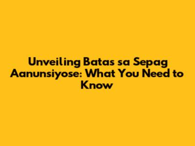 Why Should You Care About Batas sa Sepag Aanunsiyose?