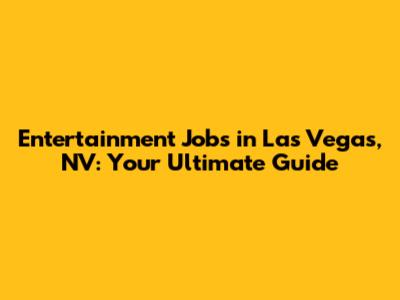 Unveiling Entertainment Jobs In Las Vegas, NV