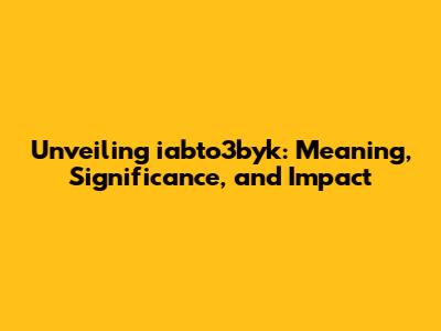 Unveiling Iabto3byk: Meaning, Significance, And Impact