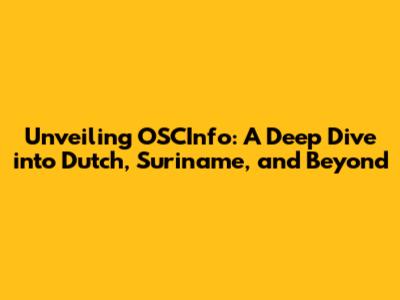 Unveiling OSCInfo: A Deep Dive Into Dutch, Suriname, And Beyond