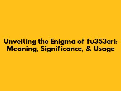 Unveiling The Enigma Of Fu353eri: Meaning, Significance, & Usage