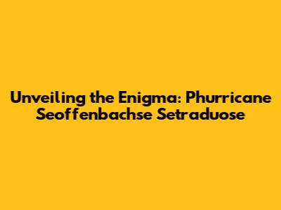 Unveiling The Enigma: Phurricane Seoffenbachse Setraduose