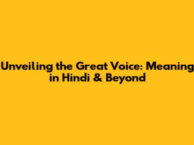 Unveiling The Great Voice: Meaning In Hindi & Beyond
