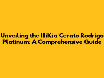 Unveiling The IIIiKia Cerato Rodrigo Platinum: A Comprehensive Guide