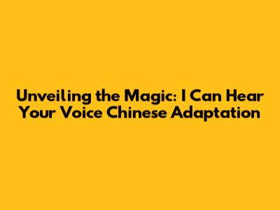 Unveiling The Magic: 'I Can Hear Your Voice' Chinese Adaptation
