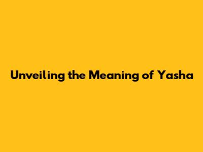 Unveiling The Meaning Of Yasha