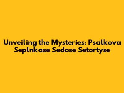Unveiling The Mysteries: Psalkova Seplnkase Sedose Setortyse