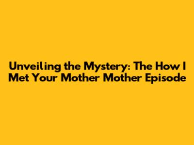 Unveiling The Mystery: The 'How I Met Your Mother' Mother Episode