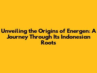 Unveiling The Origins Of Energen: A Journey Through Its Indonesian Roots