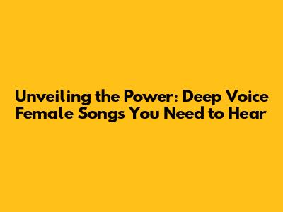 Unveiling The Power: Deep Voice Female Songs You Need To Hear