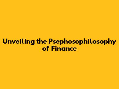Unveiling The Psephosophilosophy Of Finance