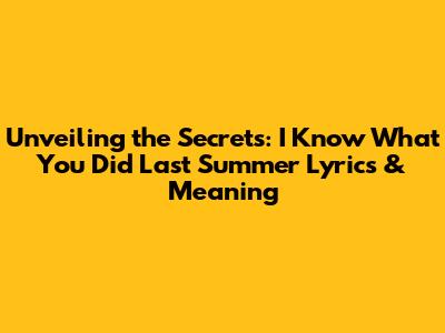 Unveiling The Secrets: 'I Know What You Did Last Summer' Lyrics & Meaning