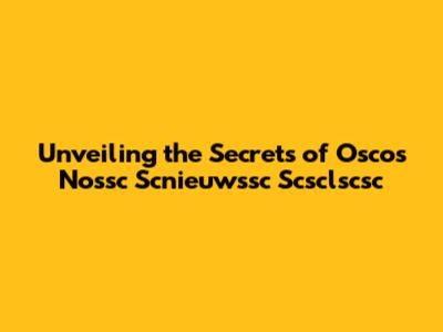 Unveiling The Secrets Of Oscos Nossc Scnieuwssc Scsclscsc
