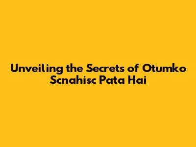 Unveiling The Secrets Of 'Otumko Scnahisc Pata Hai'