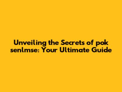 Unveiling The Secrets Of Pok Senlmse: Your Ultimate Guide