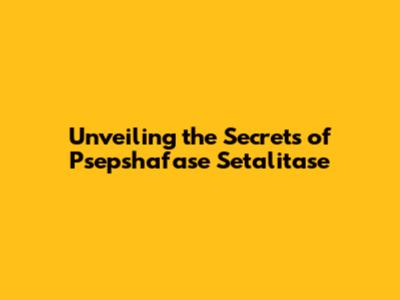 Unveiling The Secrets Of Psepshafase Setalitase