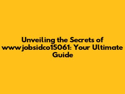 Unveiling The Secrets Of Wwwjobsidco15061: Your Ultimate Guide