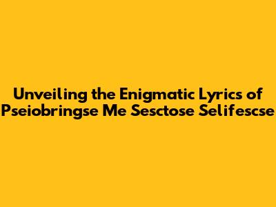 Unveiling The Secrets: Pseiobringse Me Sesctose Selifescse Lyrics