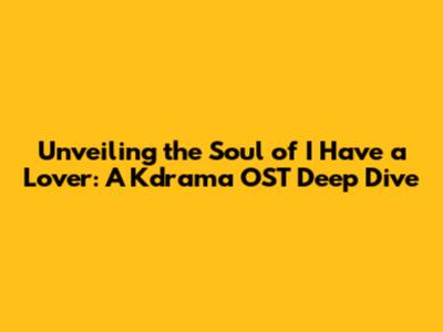 Unveiling The Soul Of 'I Have A Lover': A Kdrama OST Deep Dive