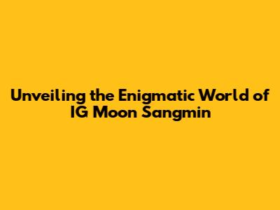 Unveiling The World Of IG Moon Sangmin: A Deep Dive
