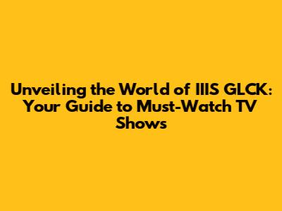 Unveiling The World Of IIIS GLCK: Your Guide To Must-Watch TV Shows