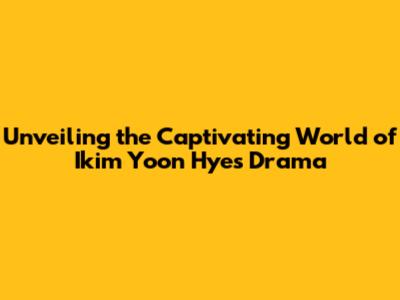 Unveiling The World Of Ikim Yoon Hye's Drama: A Deep Dive