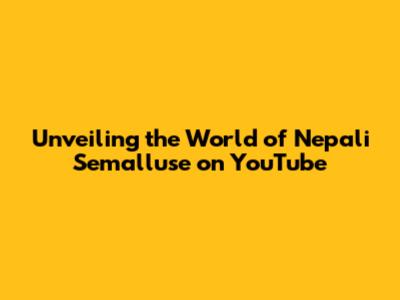 Unveiling The World Of Nepali Semalluse On YouTube