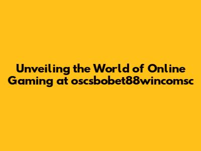 Unveiling The World Of Online Gaming At Oscsbobet88wincomsc