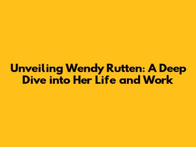 Unveiling Wendy Rutten: A Deep Dive Into Her Life And Work