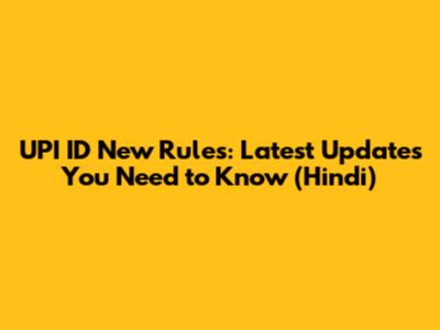 UPI ID New Rules: Latest Updates You Need To Know (Hindi)
