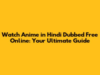 Watch Anime In Hindi Dubbed Free Online