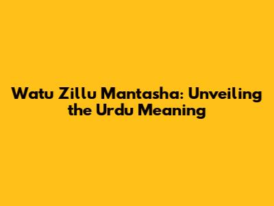 Watu Zillu Mantasha: Unveiling The Urdu Meaning