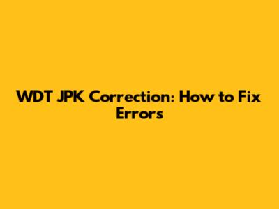 WDT JPK Correction: How To Fix Errors