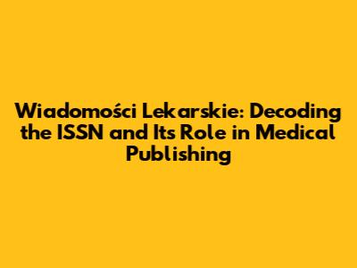 Wiadomości Lekarskie: Unveiling The ISSN And Its Significance