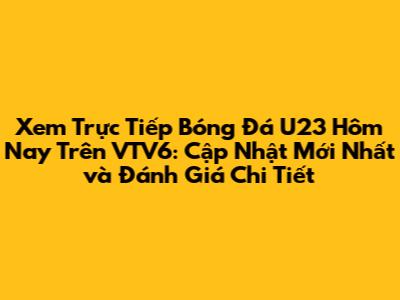 Xem Trực Tiếp Bóng Đá U23 Hôm Nay Trên VTV6