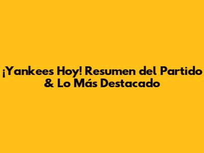 ¡Yankees Hoy! Resumen Del Partido & Lo Más Destacado