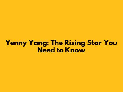Yenny Yang: The Rising Star You Need To Know