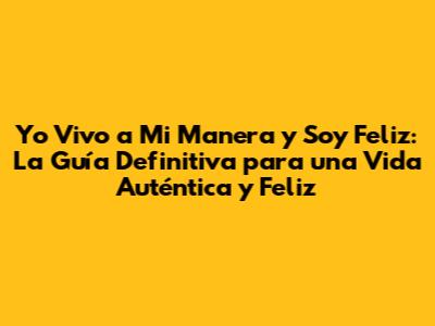 ¿Yo Vivo A Mi Manera Y Soy Feliz? ¡Descubre Cómo!