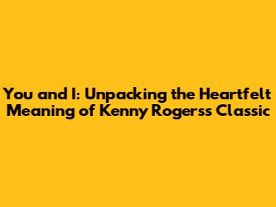 Hey guys! Ever found yourself humming along to a tune and suddenly wondered, "What's the real story behind this song?" Well, that's exactly what we're diving into today. We're going to explore the beautiful and timeless song "You and I" by the legendary Kenny Rogers. Get ready to unpack the heartfelt meaning, the emotional depth, and the sheer brilliance of this classic. Understanding the essence of "You and I" involves delving into its lyrical composition, the historical context surrounding its release, and the overarching themes it explores. The song, released during a period marked by significant social and cultural changes, resonates with listeners across generations due to its simple yet profound message about love and companionship. Kenny Rogers, known for his storytelling through music, masterfully conveys the complexities of relationships through carefully chosen words and evocative melodies. The beauty of "You and I" lies not only in its catchy tune but also in its ability to capture the nuances of human connection. It speaks to the shared experiences, the quiet moments, and the enduring bonds that define our relationships. By examining the lyrics closely, we can uncover the layers of meaning embedded within each verse and chorus, gaining a deeper appreciation for the artistry behind the song. Moreover, considering the historical backdrop against which the song was released provides valuable insights into its cultural significance and its relevance to audiences of the time. In a world often characterized by uncertainty and change, "You and I" offers a comforting reminder of the power of love and the importance of cherishing the relationships that enrich our lives. So, grab your headphones, settle in, and let's embark on a journey to unravel the meaning of "You and I" by Kenny Rogers, a song that continues to touch hearts and inspire connections around the world. Let’s get started!