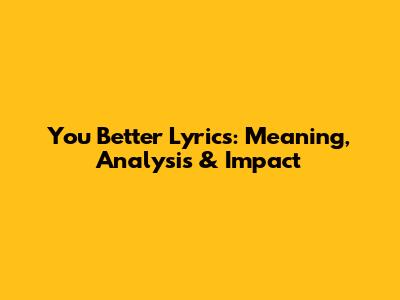 You Better Lyrics: Meaning, Analysis & Impact